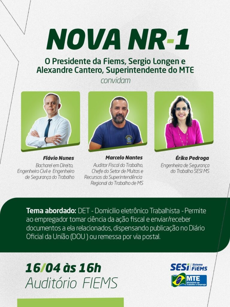 Inscrições: abertas (vagas limitadas) – https://sistemafiems.sesims.com.br/nova-nr-1